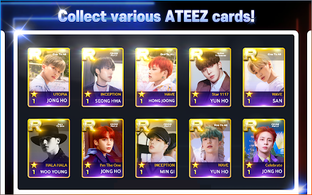 Join SEONGHWA, HONGJOONG, YUNHO, YEOSANG, SAN, MINGI, WOOYOUNG, and JONGHO in SuperStar ATEEZ, with new songs added weekly and various events to compete worldwide.