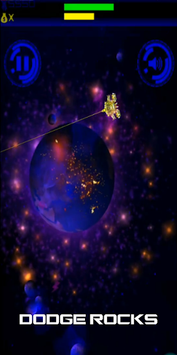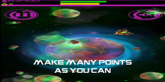 The player is passing through an impressive space with colorful planets and will face heavy rains of asteroids, which get more and more intense.