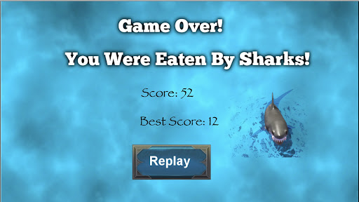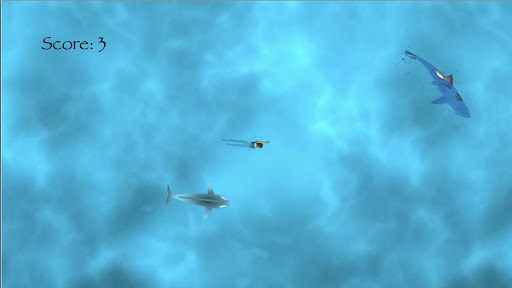 Unfortunately, there are a lot of sharks in the water. You decide to swim to see if you can reach land. Land will randomly appear on the game screen in a different place each game and if you can reach it you will be safe from the sharks. There are also other fish in the ocean, but they are harmless. It's only the sharks you need to worry about.