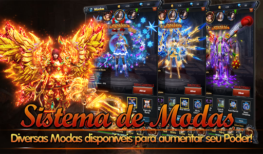 Modo de Batalha Automática, experimente uma luta feroz contra todos os tipos de monstros nas Dungeons e combates intensos contra outros jogadores na Arena PVP.