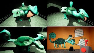 If The Player is struck by this attack, they will perish. The player is attacked by the chameleon Chamataki, who slams them with his enormous tongue, crushing them. How to draw Tamataki and Chamataki, the two-headed turtle and chameleon from the third chapter of the game Garten of Banban 3.