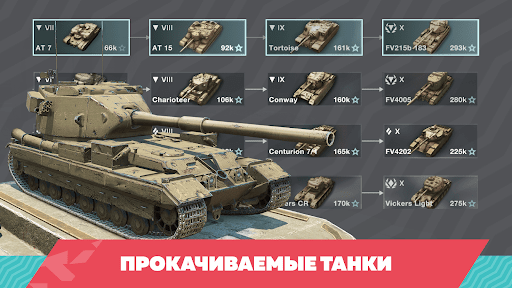 Выбери танк и врывайся в PvP-бои! А затем — совершенствуй свои машины: меняй пушки, устанавливай оборудование, тренируй экипаж. Исследуй новые танки, продвигаясь от лёгкой техники I уровня до сокрушительных машин X уровня. Пересаживайся с лёгких на средние и тяжёлые танки, испытай в боях дальнобойные ПТ-САУ — и увидишь, что каждая машина требует особенного подхода и собственной тактики ведения боя.