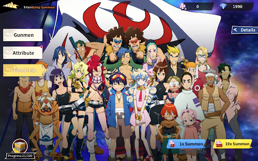 Join Team Gurren for an epic journey in the Tengen Toppa Gurren Lagann mobile game. Fight BOSS battles, embark on expeditions, and build your own Team Gurren.