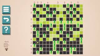 Tent placement puzzle game - use logic to fill a grid with tents next to trees, following numerical clues. Over 1000 levels available.