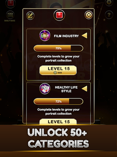 - Questions of more than 50+ categories including general knowledge, food, celebrities, animals, sports, music, movies, TV shows, brands, science, and more!