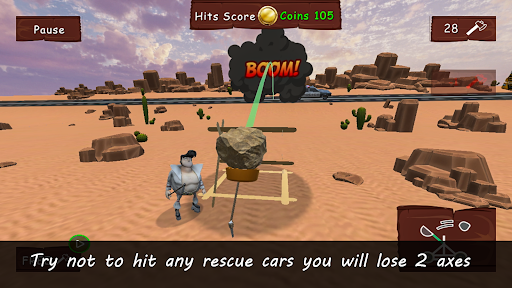 Your goal is to use the catapult to throw rocks at passing cars and create as many car crashes as possible, earning five coins for each one. However, be careful not to hit any ambulances as that will cause a car crash, and you'll lose one of your three lives.