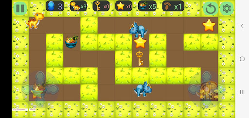The goal is to help the dinosaur by collecting the key and finding the exit door.
