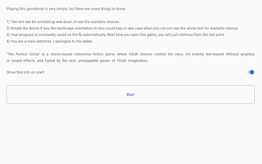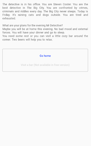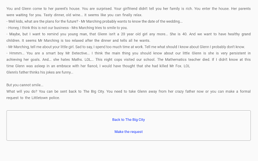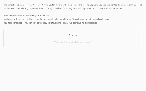 "The Perfect Crime" is a choice-based interactive fiction detective, where your choices control the story.