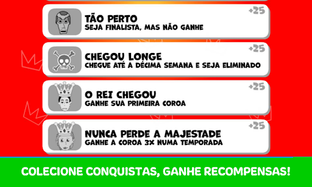 Para ganhar a coroa e se dar bem na corte, você precisa ser o mais rápido e o participante com mais pontos. Teste sua habilidade e sorte nas provas do rei, que são minijogos com a temática dos personagens do reality show! Provas hilárias lhe aguardam, como uma prova de direção maluca, encontrar uma gelatina no meio de objetos, tirar fotos de uma celebridade e até mesmo enviar um currículo em um computador defeituoso!