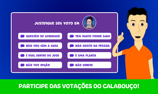 Como num reality show de verdade, você deverá votar (ou ser votado) nos participantes que forem indicados através das dinâmicas que acontecem dentro do jogo.