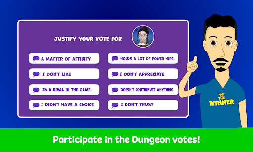 Just like in a real reality show, you will need to vote (or be voted) for participants who are nominated through the in-game dynamics.