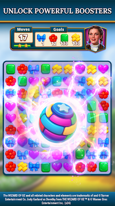 Take a breathtaking journey down THE YELLOW BRICK ROAD™ in an enchanting match 3 puzzle adventure game. Utilizing the power of your strategic mind, you will aid DOROTHY™, the SCARECROW™, the TIN MAN™, and the COWARDLY LION™ in unlocking magical movie Moments. Traverse the road to the EMERALD CITY™ and immerse yourself in the wondrous story of Oz.