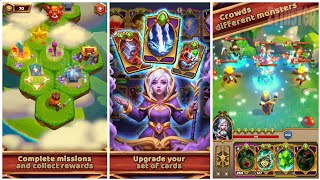 Explore diverse worlds, engage in turn-based battles, and take on hordes of powerful monsters and bosses. Acquire new characters with their own unique cards and skills. Enhance your kingdom by unlocking various opportunities and upgrades. Gather valuable resources from defeated enemies to become more potent.