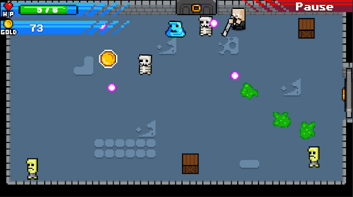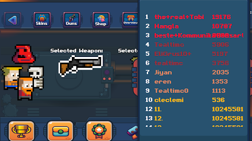 You can select a couple of guns in pixel art style and a couple of nice skins. Here are the next features: