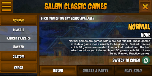 Enter the dark and thrilling world of Town of Salem, where up to 15 players are distributed randomly into factions: Town, Mafia, Serial Killers, Arsonists, and Neutrals. As a member of the Town, it's your mission to expose and eliminate the villains within your midst before they eliminate you. Adding to the suspense is the fact that you don't know who's on your side and who's the enemy, making every game unique and unpredictable.