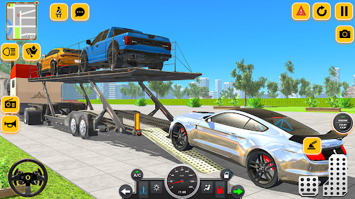 Entertain yourself in thrilling Trailer Truck Car Transporter Games you will be entertained in various car cargo transportation or engaging luxury car transporter challenges from transporter truck games. Enjoy this cargo truck simulation game, expertly utilizing a truck simulator or highly intuitive transport truck driving simulator along with a trailer truck simulator, and deliver luxury cars, city cars, or racing cars to numerous city locations in the futuristic city.