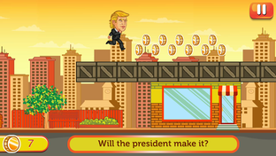 Are you ready to help the President of the United States collect his scattered money? Trump Jump, the amusing game that combines politics and fun, is waiting for you! Tap and jump your way through the game and keep President Trump away from obstacles such as Barack Obama, Hillary Clinton, and even Bill Clinton.