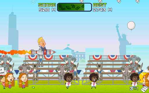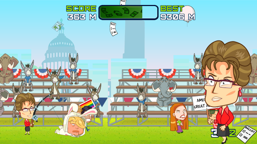 Help Trump get re-elected by collecting votes and bouncing off protestors in this hilarious game. Will you make America great again?