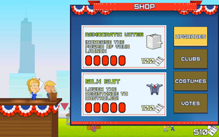 Experience the excitement of this game by hoisting your preferred choice for the presidential post. Be ready to fling, throw and bounce your candidate to dizzying heights. You can even dress Trump in a bunny costume or see him riding a freedom rocket. Interact with different game elements such as high-fiving the American eagle, fishing with Sarah Palin, or fighting with Mike Pence.