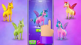 • CUSTOM MAKEOVER: Give cute makeovers to pony with beautiful hairstyles & colorful unicorn rainbow wings.