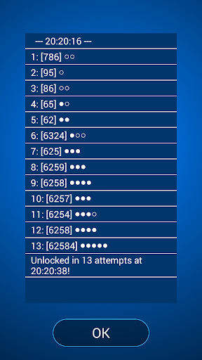 For each yellow circle it means that one of the dots in the pattern you tried is present on the code.