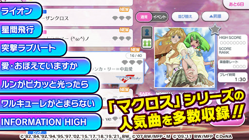 Popular pilots and divas from historical Macross series feature in this rhythm game, with new recordings and iconic costumes.