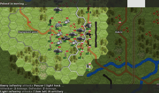 Fans of hardcore hex strategy games might enjoy the fact that the game has actual World War II era German and Polish combat vehicles and armament, supply line mechanics, artillery counter attacks, maps based on the actual historical battles, and so forth. (Some liberties have been taken in interpreting few of the details, to make the game more entertaining. But we've tried to be as close to the course of events as possible.)