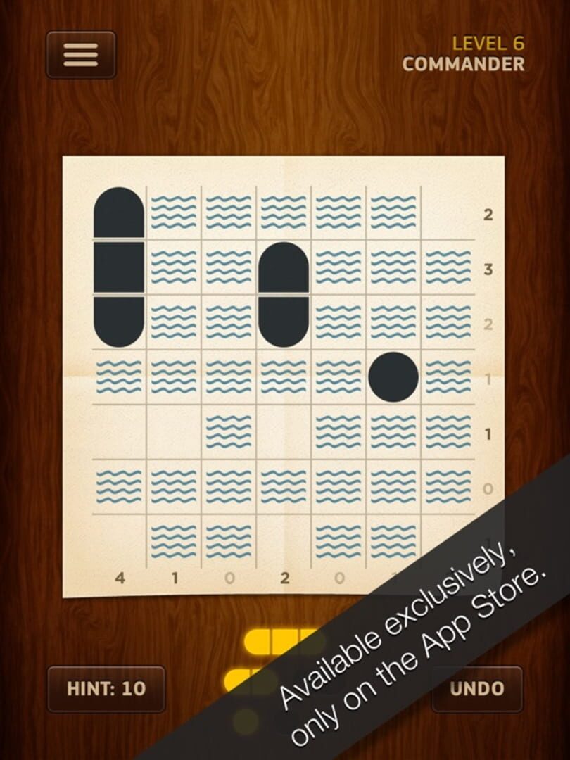 Locate hidden enemy ships in a logic puzzle. Over 125 levels to test your strategy skills. Available only on iOS.