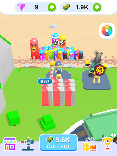 In Warzone Tycoon, your objective is to build factories and produce bullets, then transport them to the frontline to eliminate enemy forces. With each successful kill, you earn profits that can be reinvested to expand your arsenal and enhance your defenses. Strategically manage your resources and optimize production to maintain a constant supply of ammunition.
