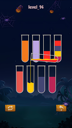 Your goal is to correctly sort the colors in each tube until all the colors are in the same bottle.