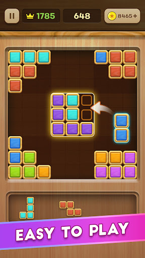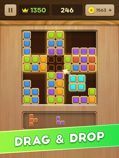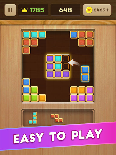 Use the wooden blocks to complete lines horizontally and vertically or 3x3 squares. Lines disappear upon completion.