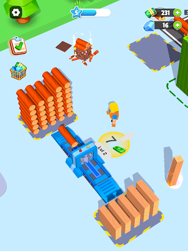 Dive into the timber world of giant wood production to earn plenty of cash and become the rich enough to expand your factory production lines.