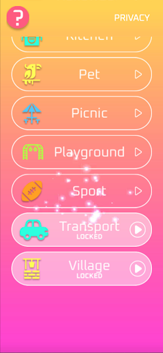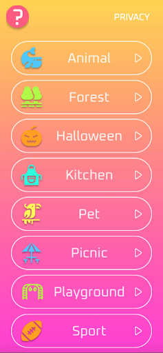 Unlock to discover favorite themes like Animals, Halloween, Pets, Sport, Transport, Forest, Kitchen, Picnic, Playground... Challenge your brain and discover new words from today's most popular topics.