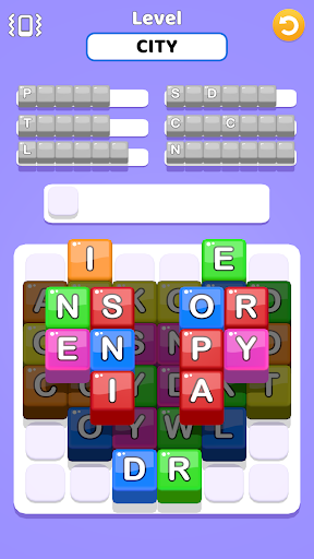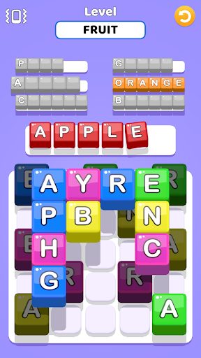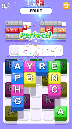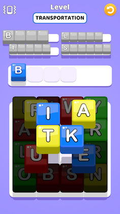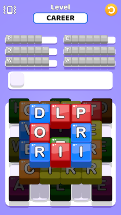 In the game, the letters are stacked on top of each other. You must spell the words from the upper letters layer by layer to unlock the letters below.