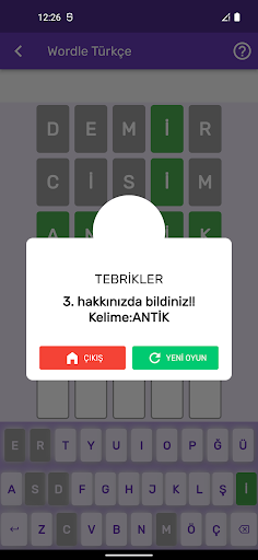 Turkish version of the popular wordle game.
