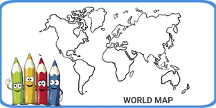 Coloring a world map is the act of filling in color on a map showing continents, countries, seas, and other geographical elements.