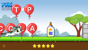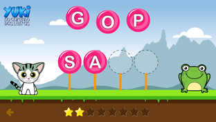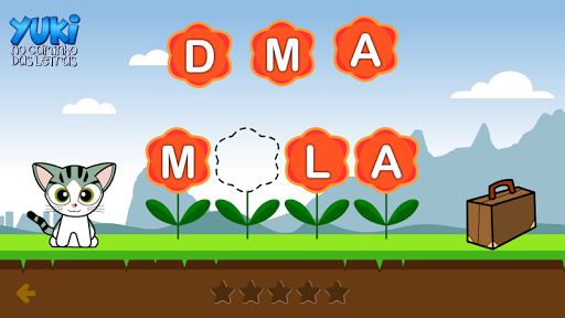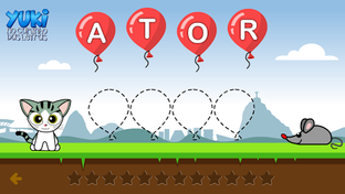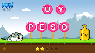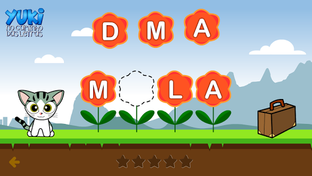 O Yuki quer encontrar a gatinha Luna, mas para isso você precisa completar as palavras com as letras que faltam.