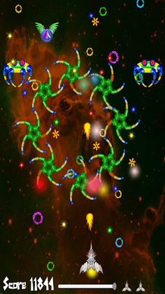 Your mighty star ship is heavily armed with the latest experimental weapons and capable of taking an immense pounding from the countless galactic invaders.