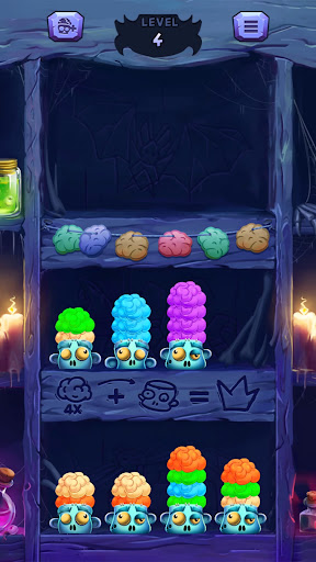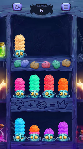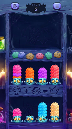 Zombie brain sort puzzle offers up a winsome experience that will hook you in faster than a zombie can say "brains."