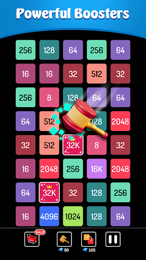 The goal is to link the number to merge and blast new higher numbers cube blocks / tiles. Eg. Double or more 2 -> 4 -> 8 -> 16 ->32 ->64 ->128->256->512->1024->2248,and so on till Infinity ∞.