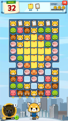 Aggretsuko puzzle game is based on the Netflix Animation, where players design dream offices with stars earned from puzzles and face evil bosses.