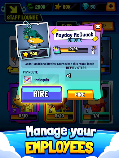 By automating your airport and hiring quirky workers such as pilots, flight crew, and services staff, you can increase your profits even when you're not playing the game.