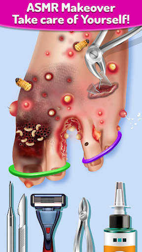 After surgery treatment as per the doctor's prescription, you will allow massaging and pedicure for foot relaxation in the ASMR foot games. Be careful of your foot problems and become a pedicure expert in ASMR games by improving your professional skills in foot games.