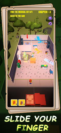 Introduction: Slide your finger, avoid zombies, use the tools to control or kill zombies and find the medical kit.