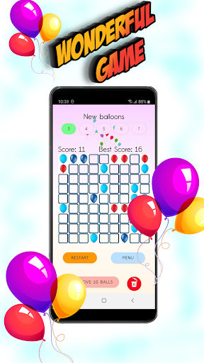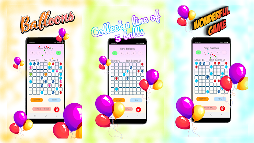 You can change the difficulty by increasing or decreasing the number of balls appearing. Your task is to score as many points as possible. Collect horizontal and vertical lines from balls! The balls will disappear when you collect a line of 5 or more balls. Good luck!
