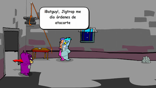 The evil Jigtrap has kidnapped Batlady to force Batguy to play his twisted and evil game.