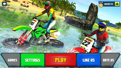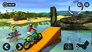 Take control of dirt motorbike to experience real water surfing bike race challenge. On this challenging and dangerous ocean your mission is to win the racing levels by beating all beach surfing motorbike riders. As a bike rider you can drive your bike on the beach as well as on the sea by transforming bike into jet sky like boat. The tyres of bike get transformed into floating tyre once you jump into ocean.