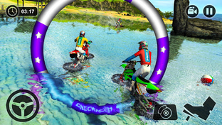 In Free mode ride your surfing bike with full speed to collect the check points on the beach sand. To unlock new wonderful luxurious motorbikes you have to win the bay race by driving floating motorbike through all checkpoints. Become the legend of beach racing by doing stunts and jumps with extreme modern motorbikes! Enjoy ocean rides with Beach Water Surfer Bike Racing.