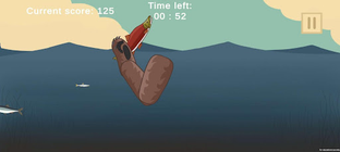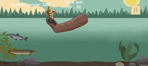The player progresses through stages while catching fish in a bear-themed fishing game. To catch any fish that comes your way, just drag the bear's paw and swipe at them. Be cautious as some fish are more valuable than others, so be on the lookout for their appearance.