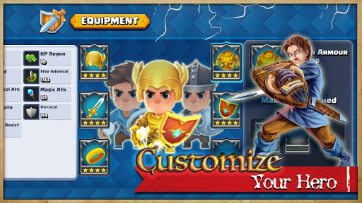 Playing the game unlocks the Daily Dungeon that you can enter to upgrade your heroes and towers. The game provides over 20 equipment items that players can customize to improve their heroes' strength and defense.